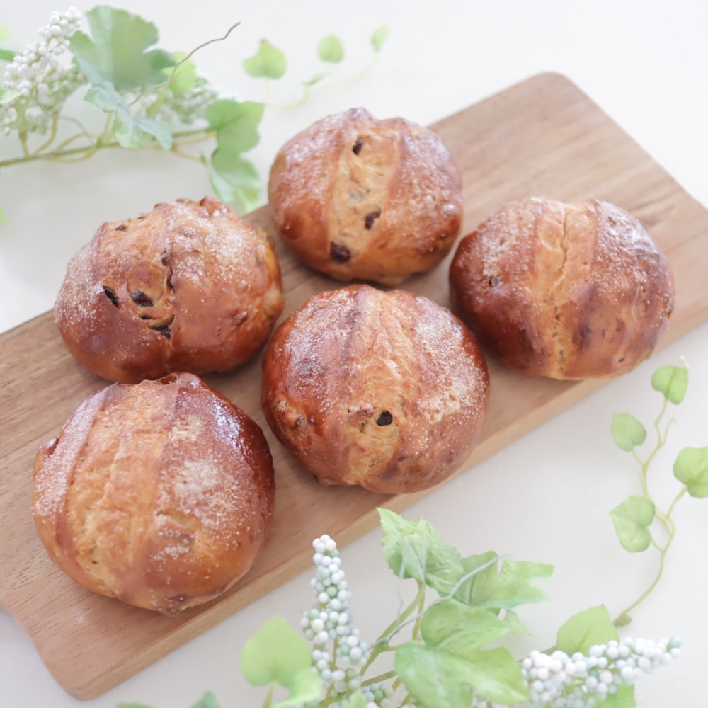 黒糖の深い甘みに、くるみのカリッとした食感とレーズンの自然な甘さをプラスしたパンです。毎日の朝ごはんにも、コーヒーと一緒のおやつ時間にもぴったりの優しい味わいに仕上がります。